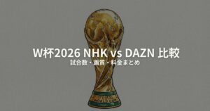 各プランの詳細はDAZNの料金とプラン一覧で確認できます。DMM×DAZNホーダイとの料金差を詳しく見たい方はDAZNとDMM×DAZNホーダイの比較記事もどうぞ。DAZN以外の視聴手段も含めた全体像はW杯2026の視聴方法まとめで整理しています。