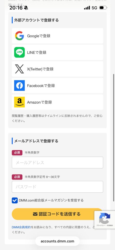 既存アカウントがあればログイン、なければ新規作成します。(先ほどのDMMアカウントとは別)