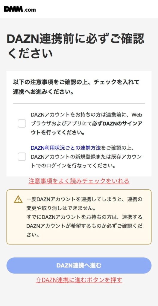 • 連携したDAZNアカウントが正しいか(※連携は変更・取り消し不可)