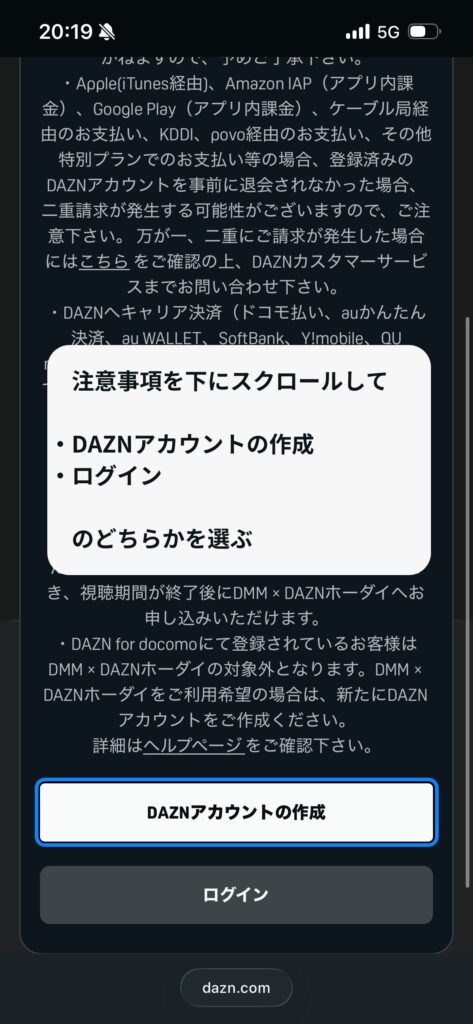 ブラウザから申し込み」→「DAZN連携まで完了」がポイント。