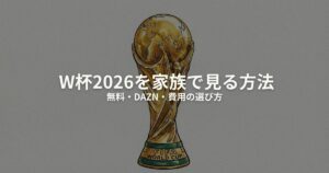 W杯2026はDAZNで全104試合ライブ配信。月払い最安は「DMM×DAZNホーダイ(月額3,480円)」で、DAZN単体より毎月720円安くなります。
