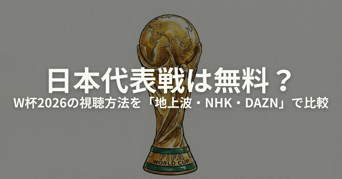 この記事は「W杯2026の視聴」を中心に、地上波(民放)・NHK・DAZNでどう違うかを、料金と手順で整理します。